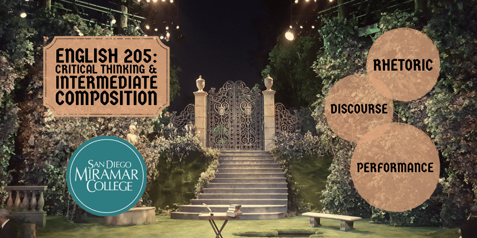 Welcome to the course! English 205 will help you practice and develop your critical thinking and critical writing skills as you expand your knowledge of academic discourse and your use of rhetorical strategies. The course is all about sharpening your ability to engage with language itself more critically as we explore and write about complex ideas, current issues, and enduring questions. Throughouth, we will emphasize the ways that rhetoric, literacy, culture, technology, and ideology shape our experiences and our identities.